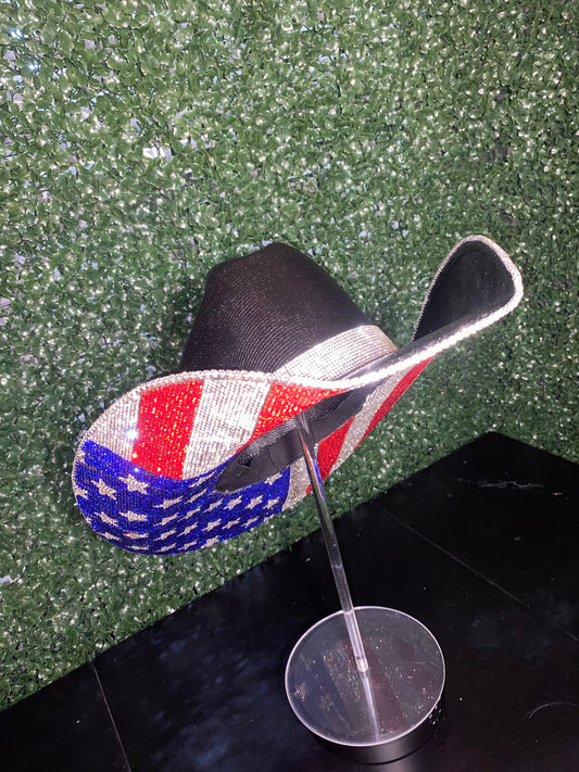 American Flag Rhinestone Hat w/top Stars (bottom brim only)