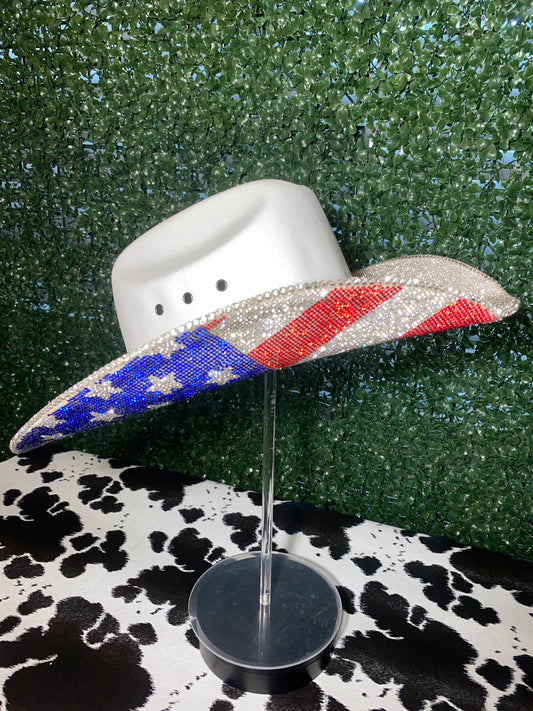 American Flag Rhinestone Hat (bottom brim only)