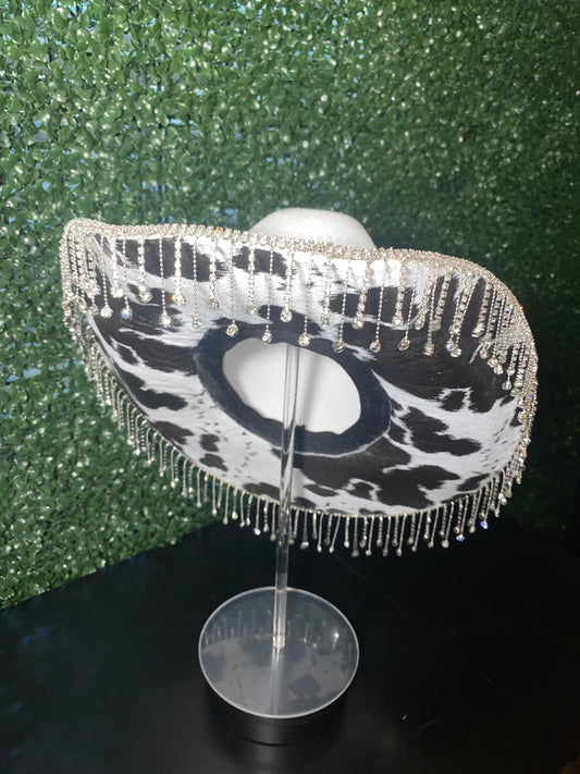 B&W Cow Print (silver rhinestone top brim)
