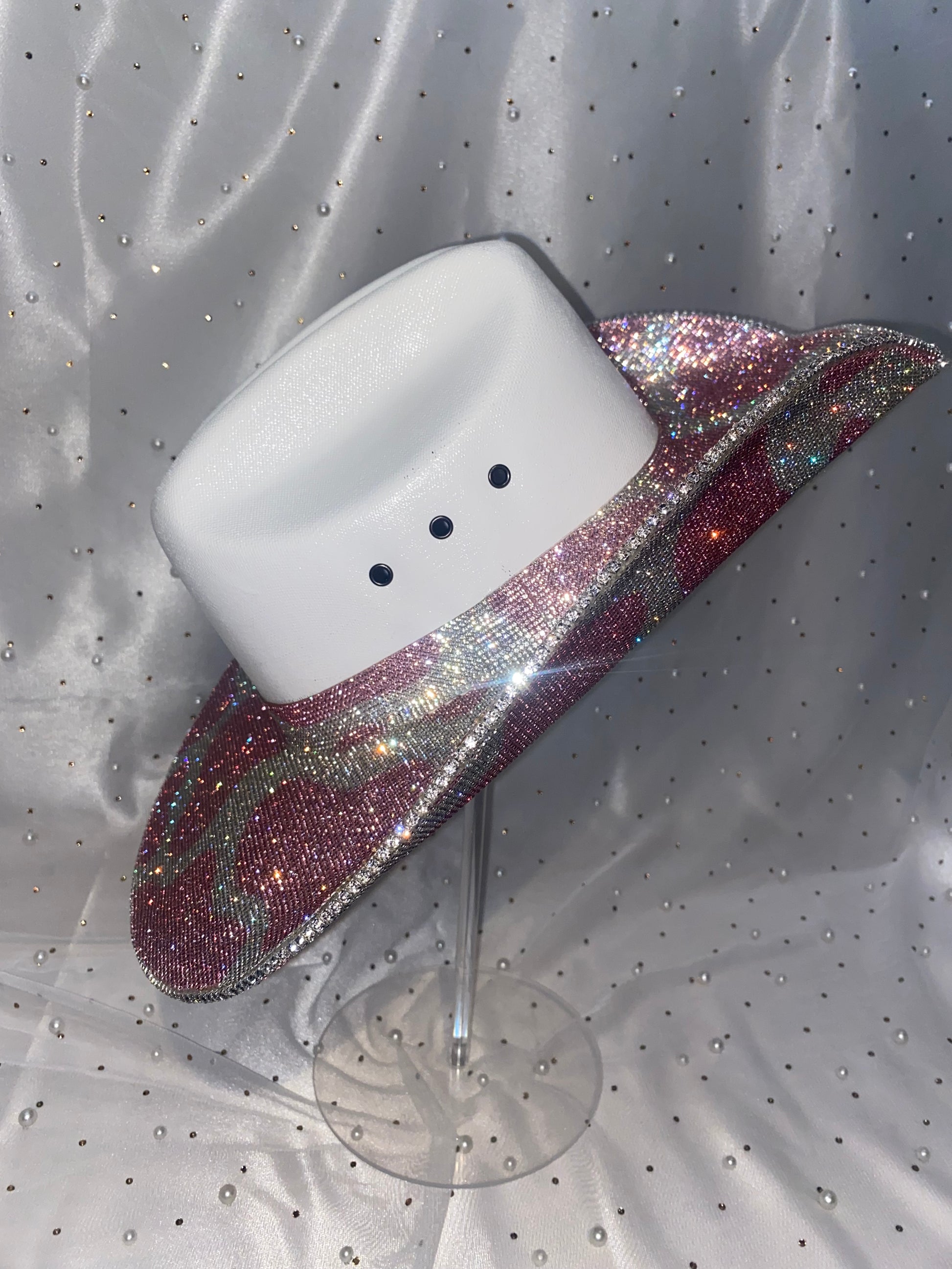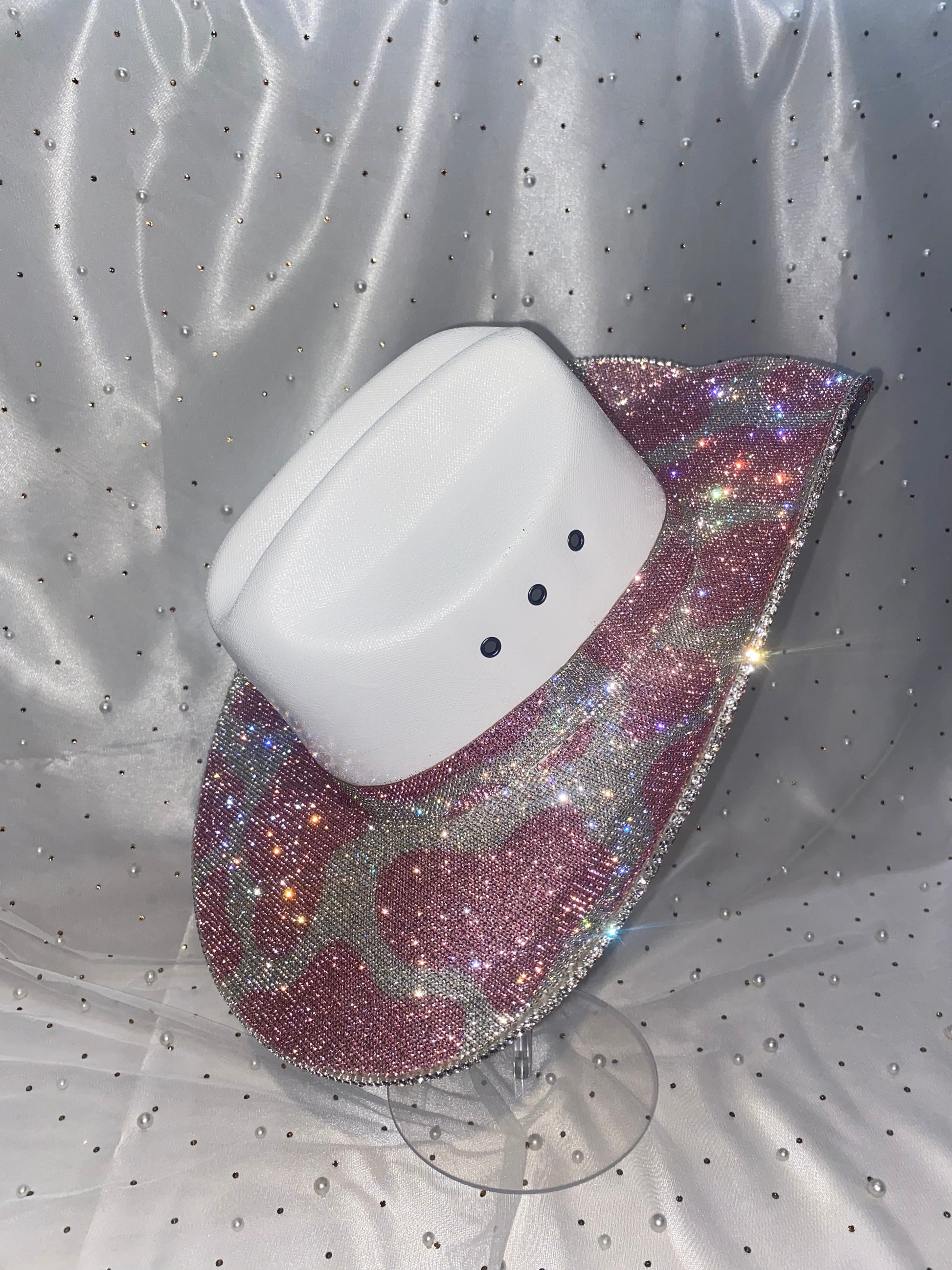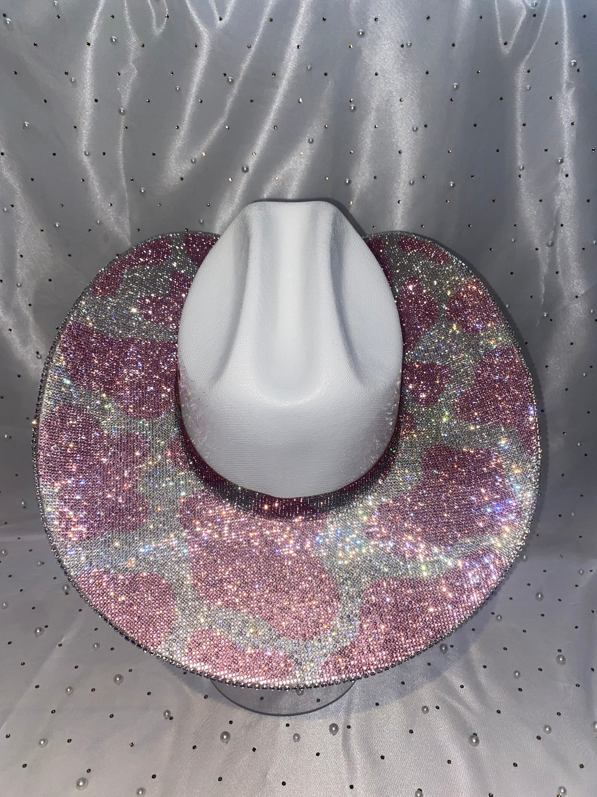 - Pink Rhinestoned Cow Print on the top & bottom brim